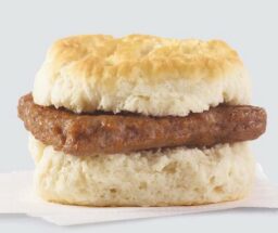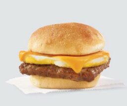 A fresh-cracked grade A egg on a fluffy buttermilk biscuit with grilled sausage and melted American cheese. Meet your new morning favorite