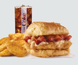 Spicy Chicken, Pepper Jack Cheese, Hot Honey, Applewood Smoked Bacon, Crunchy Dill Chips. Cal:710