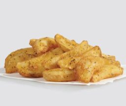 Natural-cut, skin-on potatoes cooked to perfection and seasoned with cracked black pepper and garlic powder.
