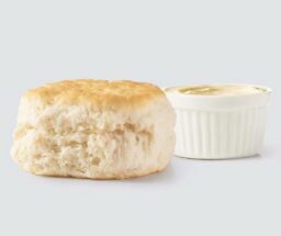 Fluffy buttermilk biscuit spread with maple honey butter. The kind of down-home breakfast that melts in your mouth and makes you reminisce about the farm, even if you’re from the city.